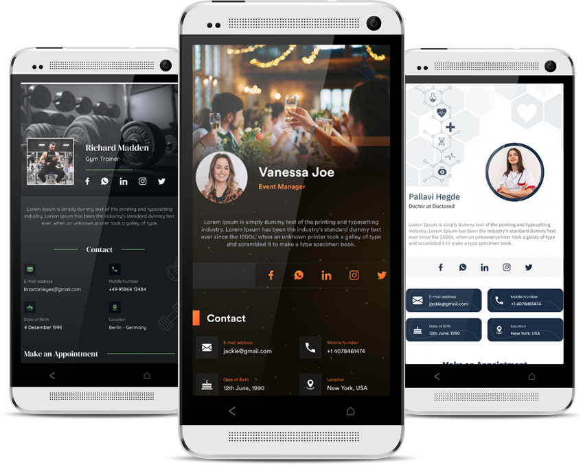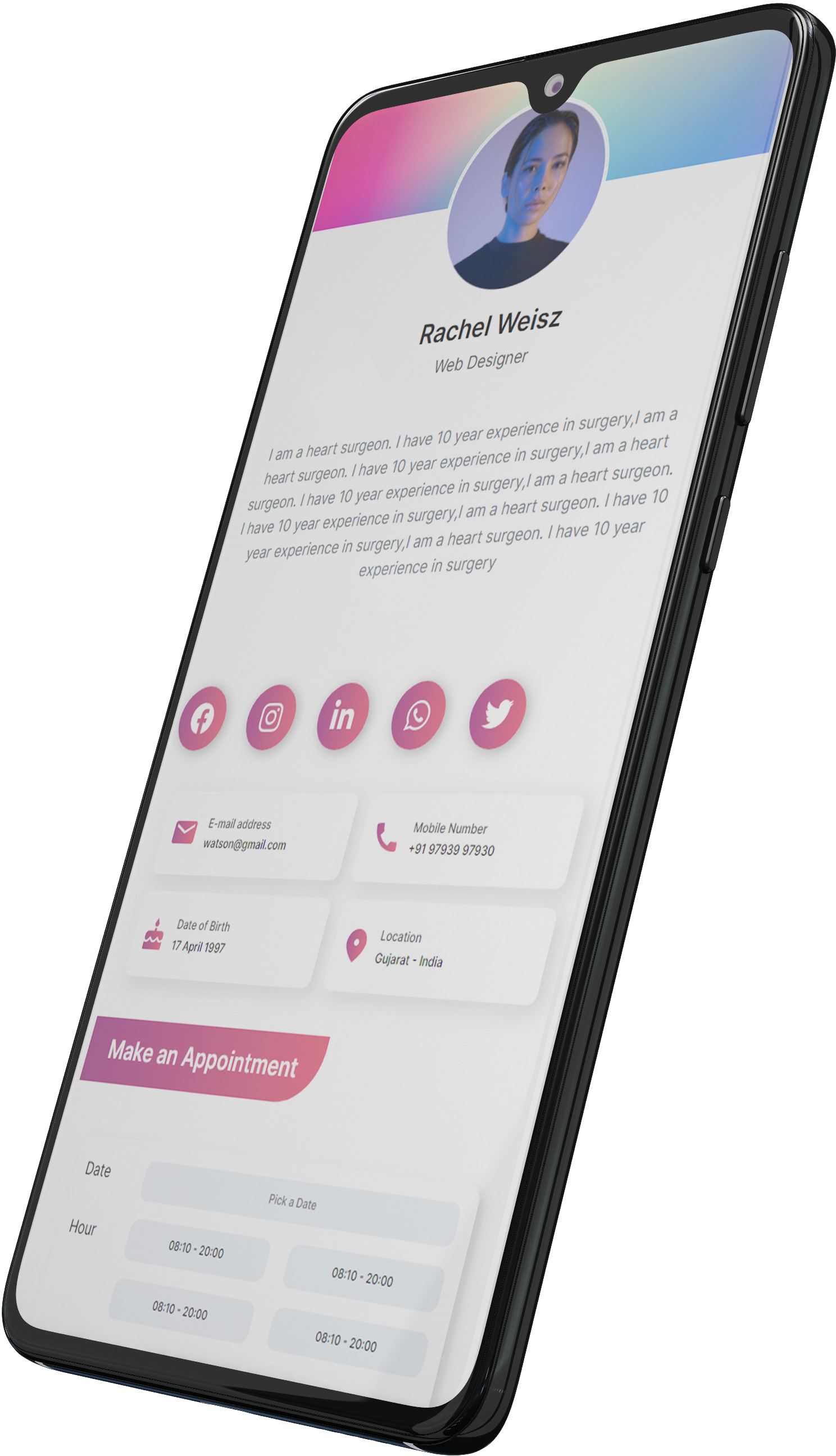 Rendez votre carte digitale unique, car elle est entièrement personnalisable. Vous pouvez y présenter vos services et produits, y intégrer un formulaire de contact, vos horaires, etc